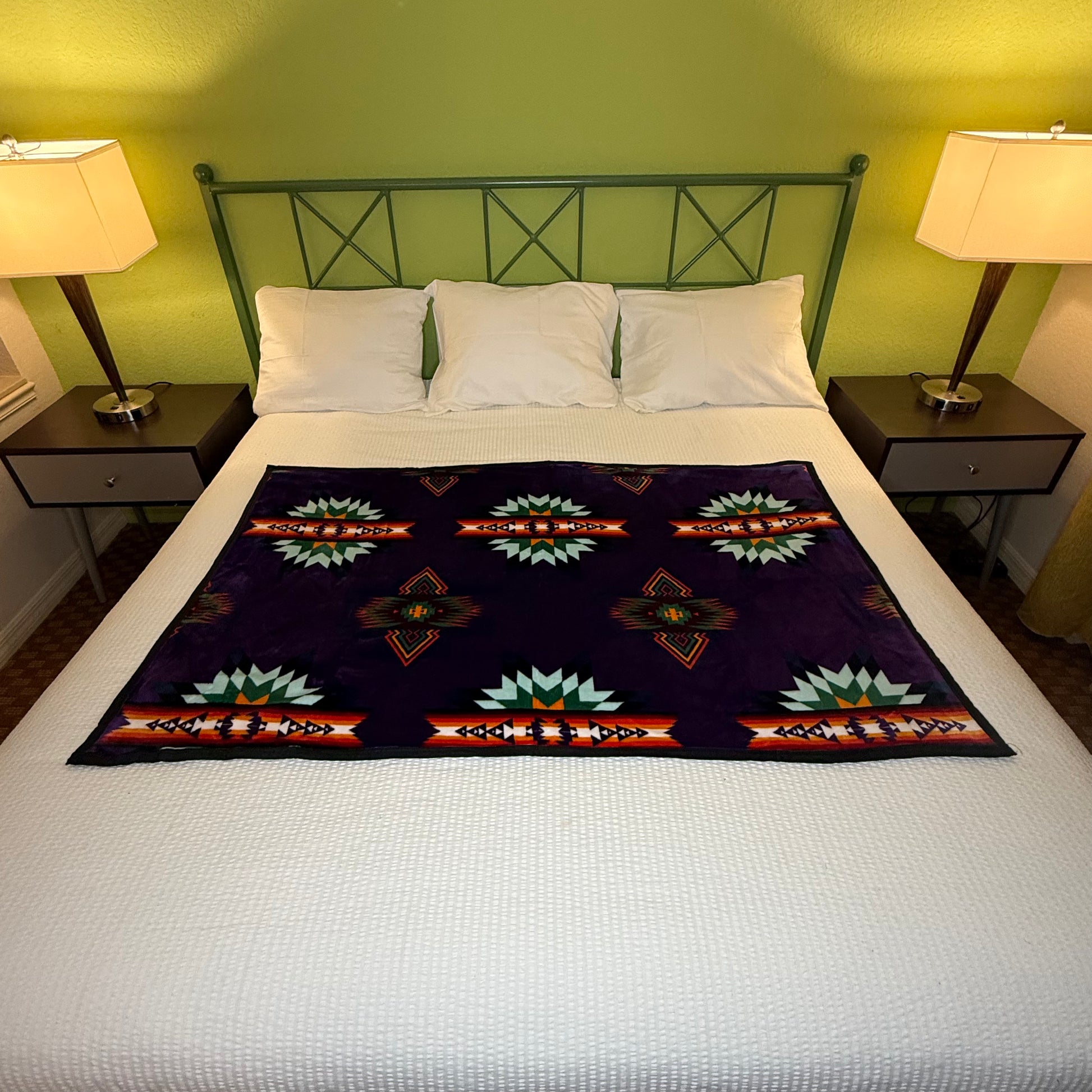 Embrace Native artistic traditions with this Geometric Star Baby Throw, expertly crafted from luxurious velvet plush. The reversible design features dark purple on one side and refined black on the other, providing versatile styling to match any décor. Perfectly scaled as a baby throw, it works beautifully for crib layering, stroller draping, or wall display. Authentic geometric patterns honor Native craftsmanship while delivering exceptional softness and durability. A meaningful choice that combines cultural appreciation with everyday comfort and practicality for your family.